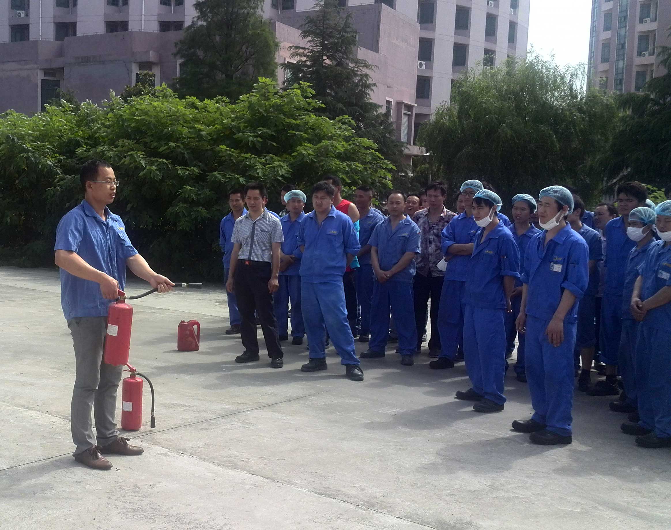 這不是真的火災現(xiàn)場,而是青湖一年一次的消防演習。本次演習的目的就是使員工能正確使用消防器材撲滅初始火災,了解緊急情況下的逃生路線和逃生方法,提高員工的安全意識和自救技能。